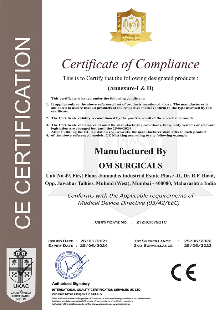 Our manufacturing processes are certified by ISO 9001 & ISO 13485 and CE-marked, ensuring adherence to international safety standards.